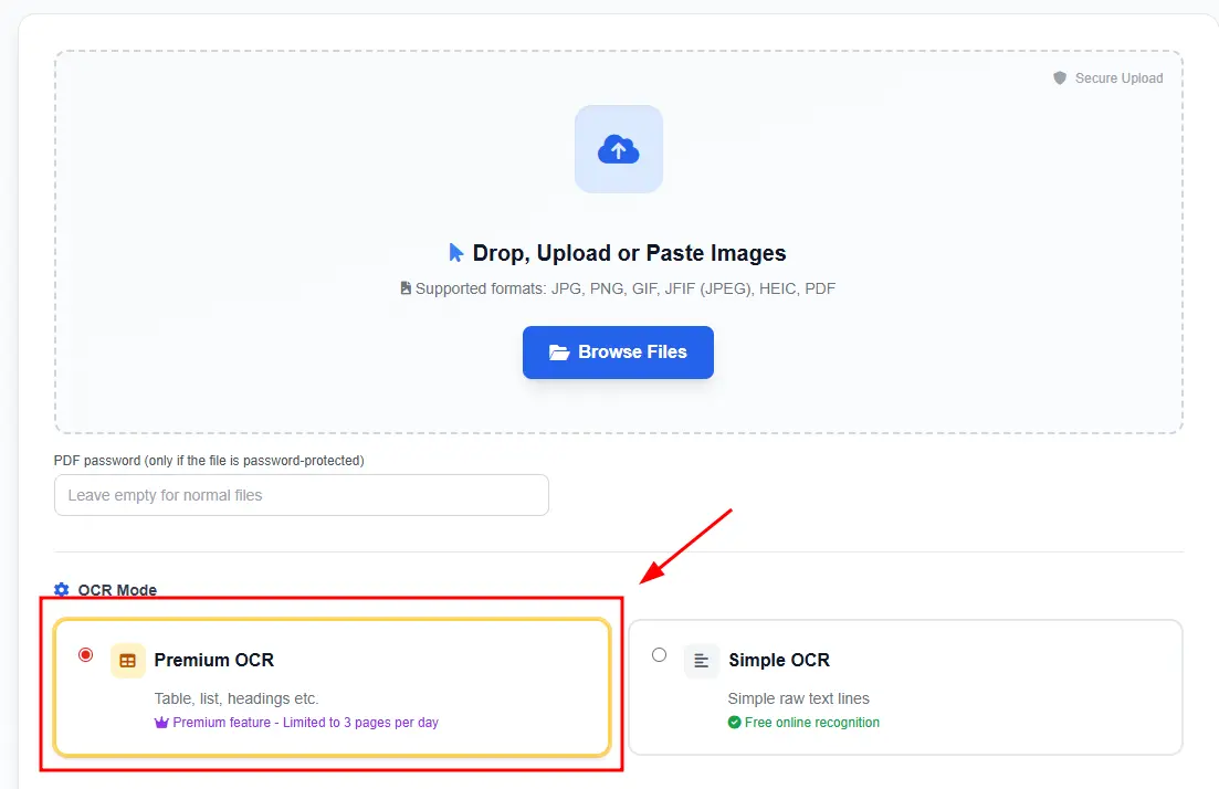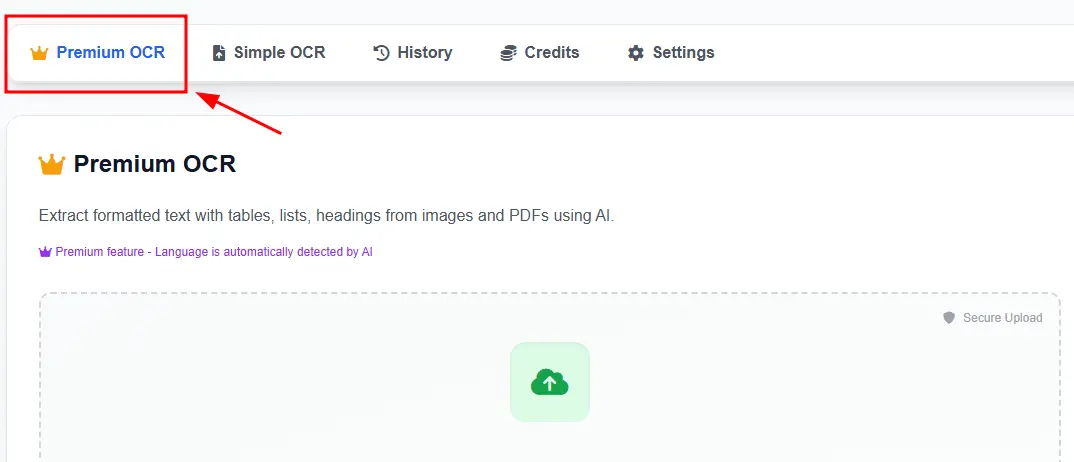 Da biste prepoznali tabelu praktično bilo koje složenosti - potrebno je da koristite Premium OCR servis na sajtu. Za to možete otići na glavnu stranicu sajta i u preklopnom meniju izabrati Premium OCR